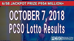 You can also post in the comment section below any hearing or reaction about this Swertres result October 7 2018 or check here other latest Lotto Result from PCSO. 18-05 900 PM Draw. 658 LOTTO RESULT October 7 2018 Here is the result of Ultra Lotto draw released by Philippine Charity Sweepstakes Office PCSO.